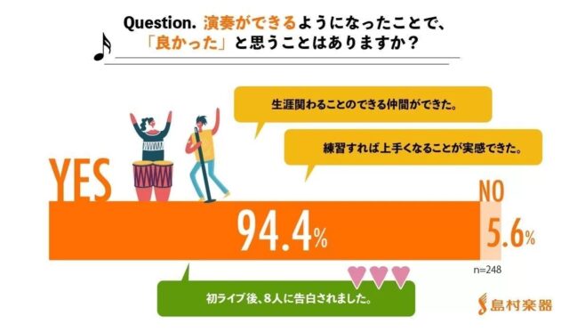 ただ、楽器を演奏できて良かったと考えている人は多いようです。