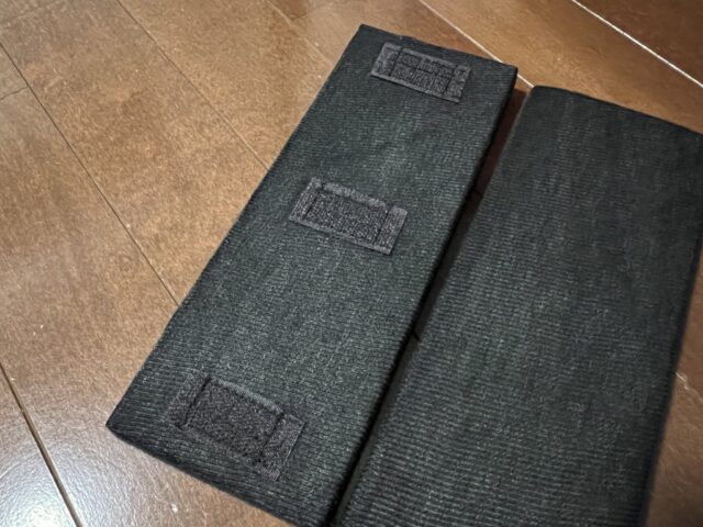 パッケージを開けると、片面にベルクロがついたクッションが2つ出てきます: