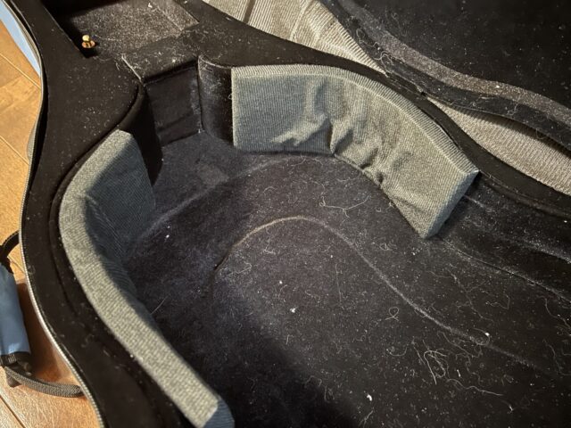 これでギターとケースの間の隙間が埋められ、ギターが動くかなくなるのですが、2つの問題があります。