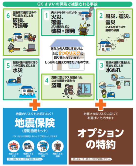 火災だけでなく、盗難や不注意などによる破損や汚損等にも対応しています。地震保険も原則自動セットとなっていますので、意外とこれだけで十分に見えるのではないでしょうか?なお、「盗難」は補償されますが、自分のミスによる「紛失」は補償されないようです。