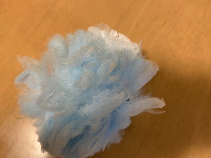 ギターの内部に入れる時は全面埃をとる部分にしたいので輪ゴムを使って丸くしてやります: