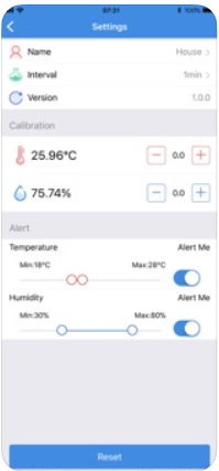 リアルタイムの温度/湿度が表示できるほか、変化をグラフ化したり最大/平均/最小の表示も可能です。