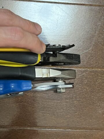 下の写真において、ペンチの先端はつかむだけですが、SC-150は刃があるのがわかるかと思います: