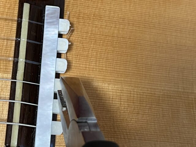 ワイヤーカッターを使って切ったので、攻めきれずに弦が長く残ってしまっています。