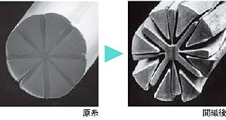 これは以下の画像のように花びらが開いたような構造を持つ繊維で、皮脂汚れも洗剤を使わずに拭き取ることが可能です。