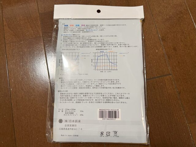1つ目は布タイプの調湿剤である「モイスキーパー(Moiskeeper) 楽器用湿度調整シート」です:
