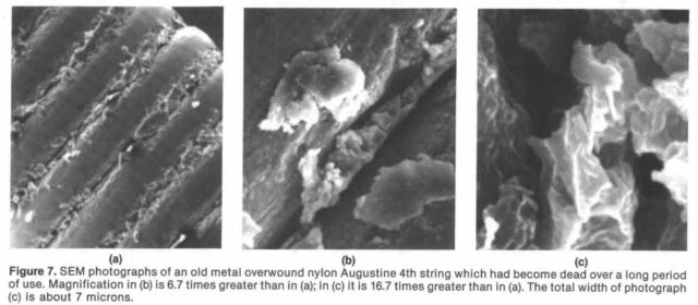 そこで30年以上前に発表された研究論文である、「Analysis of “live” and “dead” guitar strings(生きているギター弦と死んだギター弦の解析)」を紐解き、その理由を探りたいと思います。
