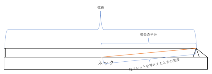 弦の高さや太さによってフレットを押さえたときの弦長が変わる