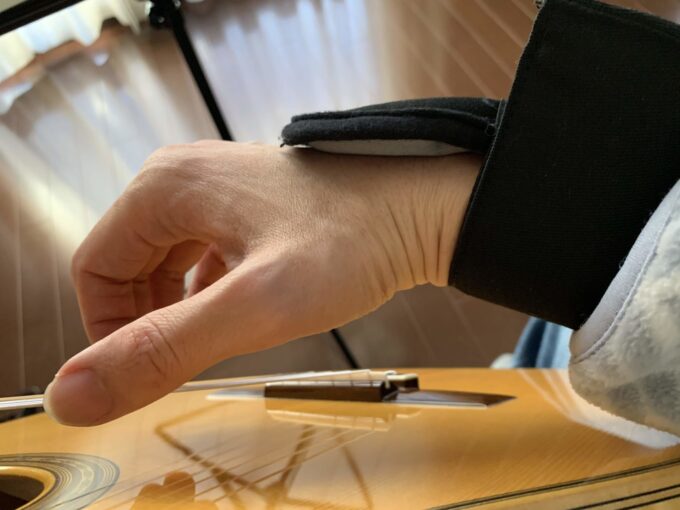 しかしながら、i,m,aの指で低音弦を弾いている状態から高音弦に移るとき、腕を動かすのではなく手首を反らして弾いてしまう癖があるようで、その時に板に当たってしまいました。