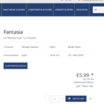 しかも、紙の楽譜よりも一般的にPDFの楽譜は安価。たとえば、先ほど紹介した椿姫の主題による幻想曲は、PDFなら5.99ユーロ(約744円)です。
