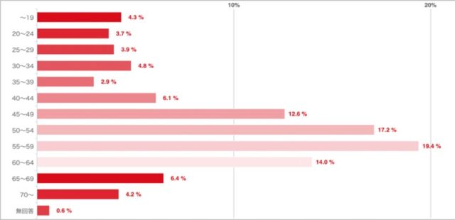 年代別に回答者を見ると、45歳以上がほとんどであり、これも一因でしょうか。