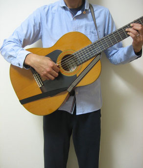 このため、クラシックギターを立ったまま弾くには専用のストラップが必要となります。