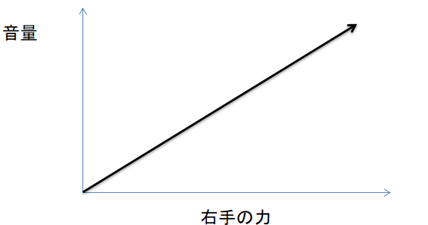 ところが、音量と力の関係は実際にはこのように直線的ではありません。