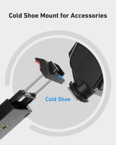 たとえばシューマウント取付型のスマホホルダーを取り付ければ、スマホなどのアクセサリを追加で接続可能です: