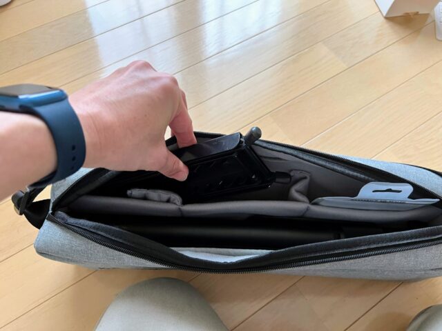 まるでカメラバッグのような構造ですが、このコンパートメントの大きさを調整することでさまざまなものが収納可能です。