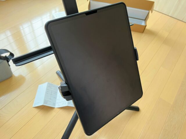 KraftGeekらしく作りは非常によく、重い12.9インチiPad Pro(700gほど)を取り付けてもしっかり安定しています。
