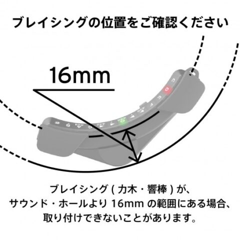 また、ホールの大きさは100mm±3mm、ブレイシングがホールの縁から16mm以内にないことが取り付け条件となっており、確認してからの購入をお勧めします。
