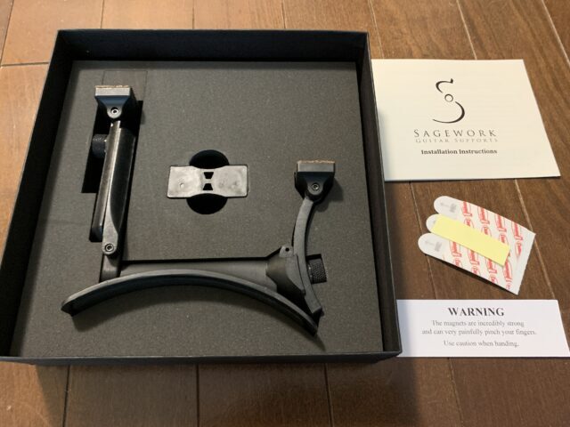 SageWork Guitar Supportは、磁石を使ってギターに固定する支持具です。昔はBarnett Guitar Supportと呼ばれていました。