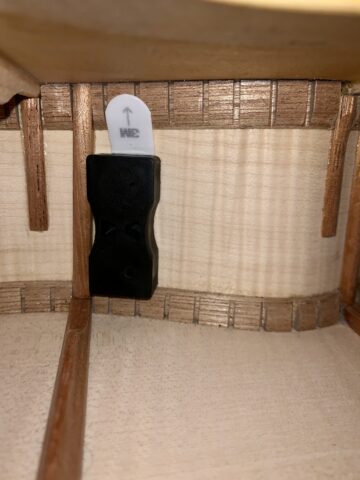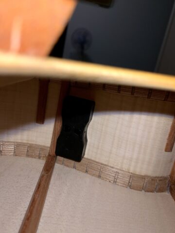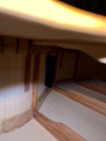 私のギターの場合、以下の写真のように木の棒がたくさんあり、そのぎりぎりのところにつけざるを得ませんでした。