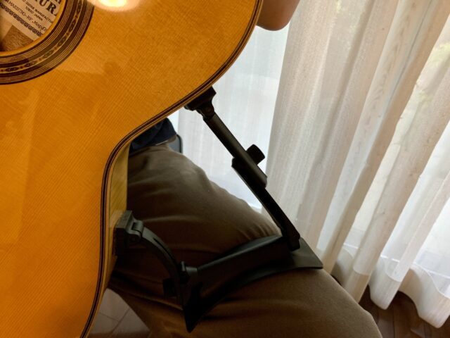 SageWork Guitar Supportを実際に演奏に使って感じたのは、体重をかけた時の安定感が高いということです。