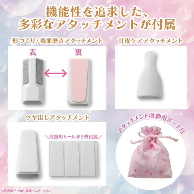 テスコムが発売したのは、セーラームーンに出てくるキャラクターが劇中で使うロッドを模したデザインの電動爪ヤスリです。