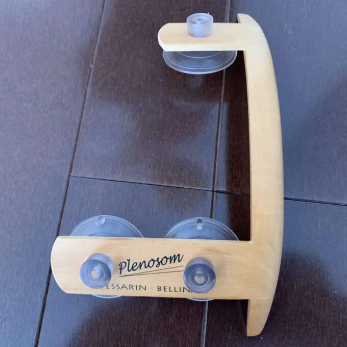 最初にこのプレノソム・アームレストを持ったときの感想は、「軽っ!!」というものでした。全体が木でできている上に薄く作られており、小さくて軽いです。