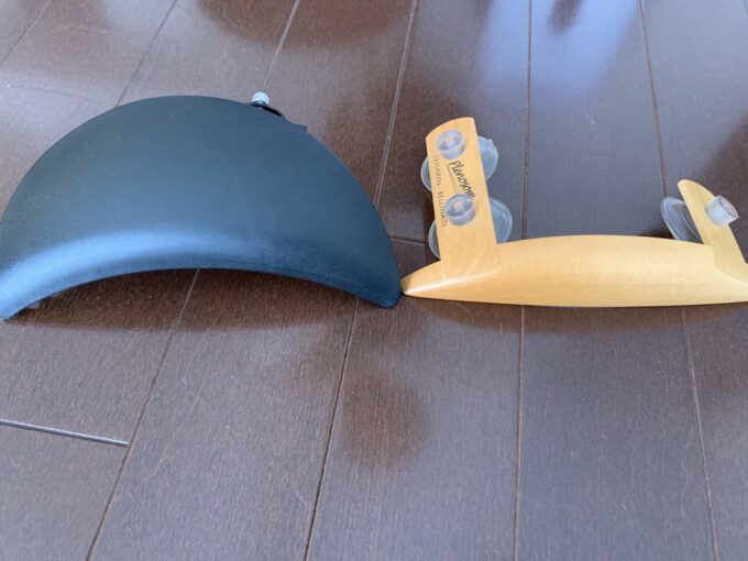 裏を比べるとこんな感じ。アーベルの方はギターを挟んで止めるタイプですが、プレソノムの方は吸盤で側面板にくっつけるタイプです。このため、アーベルは多少なりとも表面板にアームレスト自体が触れますが、プレソノムの方は一切触れません。