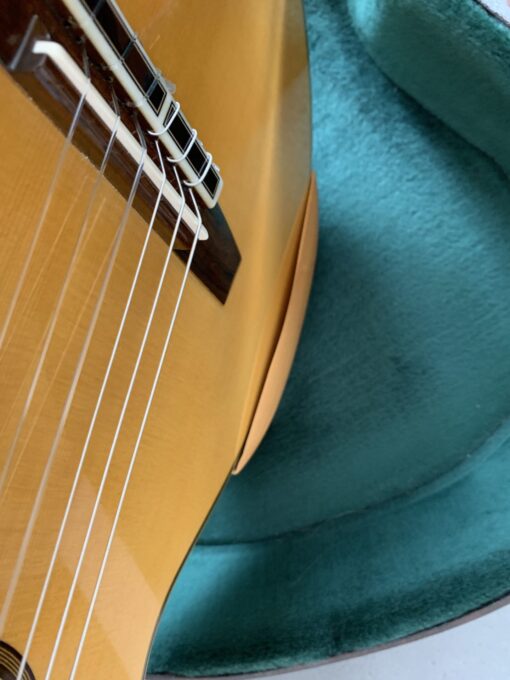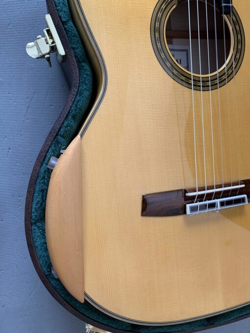 横から見るとこのように、ギターの表面板には一切触れていません。これなら表面板の振動を妨げることは一切ないでしょうね。