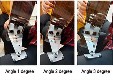 角度、高さ、水平方向の位置、体との角度を調整でき、自分に合った角度で演奏することができます。