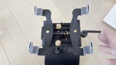 以下の動画のように、レバー部分を回すとギターレストと同じようにねじ込み式で万力が開いたり閉じたりし、さらにレバーを倒したり起こしたりしても開いたり閉じたりします: