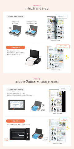 私は現在新しく購入した楽譜はプリンタ複合機でスキャンしていますが、やはり背の部分のスキャンが難しく、このスキャナがあったらなぁと感じています。