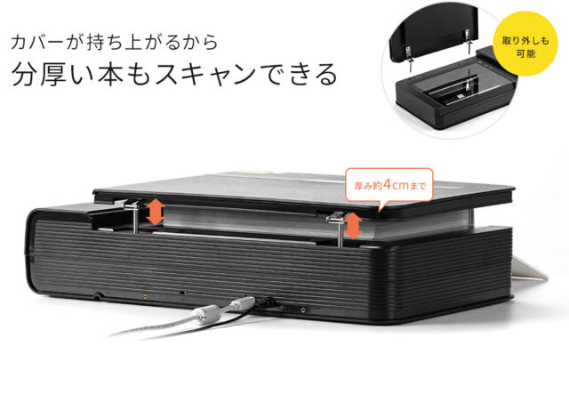 さらにこのスキャナはカバーが持ち上がる構造になっています。