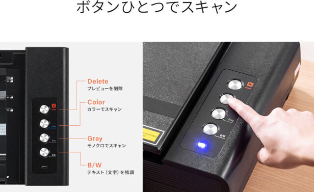 また、本を押さえながら作業をするとパソコンの操作がしづらいため、スキャナ本体のボタンからスキャンをスタートすることができるようになっています。