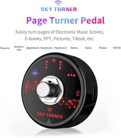 電子楽譜の譜めくり器(ページターナー)というと一般的に左右にペダルがあり、右を押せば次のページに、左を押せば前のページに譜めくりされるものが多いです。ただ、2つのペダルが必要なだけに大きいのが難点。SKY TURNER ST-1BTはペダル数をあえて1つに絞ることで、安くて軽くて小さいページターナーになっています。