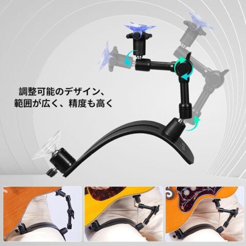 【調節可能で多用途】: このギター吸盤スタンドは、最大21cmまで調節できる2セグメントアーム設計を採用しています。スタンドアームはユニバーサルボールヘッドに接続されており、高精度で幅広い調整が可能です。操作が簡単で、ギターの持ち方の習慣に完全に対応できます。