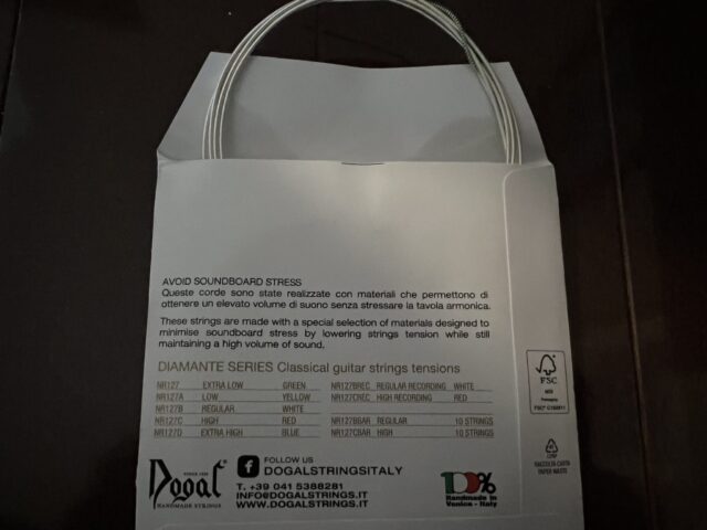 クラシックギター用の弦としておそらく最も張りが弱いであろうドーガルのディアマンテ エクストラローをハウザーに張ってみました。テンションが低いのにしっかりと音が出る特定は相変わらずで、魅力的なセット弦です。