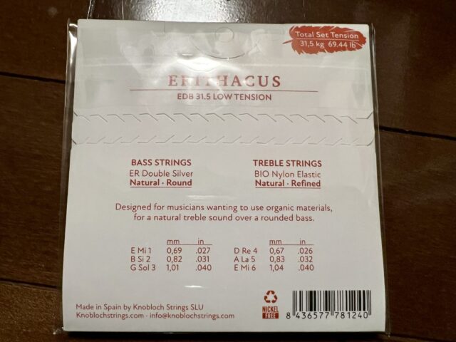 EDB 31.5は自然で丸みのある音と低いテンションで、弾いていて指も耳も疲れない弦だと感じました。