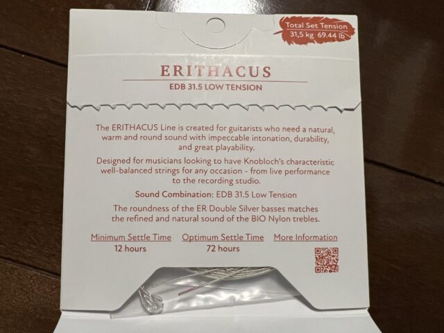 相変わらずノブロックは日本での入手性が悪く、エリタクスも気軽に買えるわけではありませんが、気分を変えるにも常用するにもよい弦です。