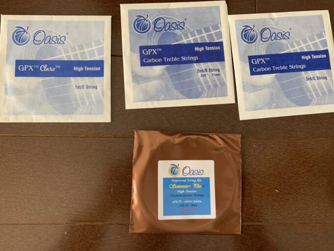 オアシスというと日本ではギター用湿度調整グッズのメーカーとして知られています。実は、クラシックギター用の弦も販売しているんです。今回はそんなオアシスのラインナップのなかから、GPX Claroというセットをレビューします。1弦が特殊なナイロン、2,3弦がカーボンという変わったセットです。