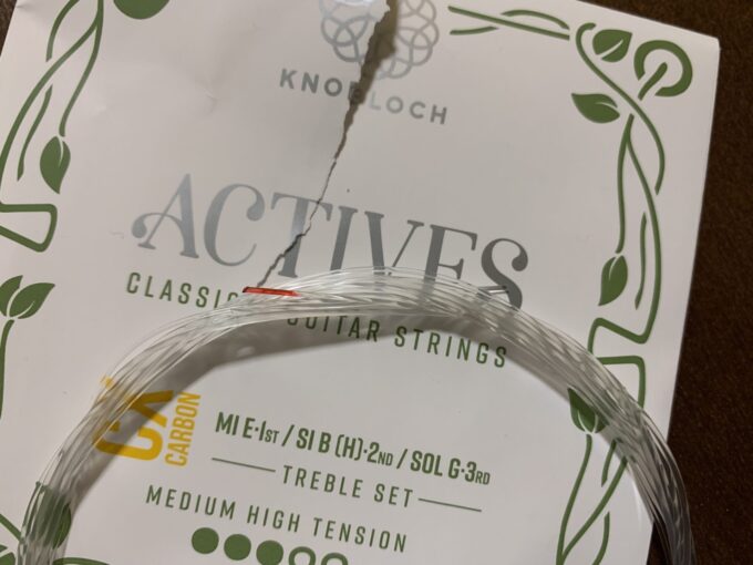 日本ではあまりメジャーではありませんが、ブローウェルなどが使っている弦です。高音弦がカーボンですが、カーボンっぽくない柔らかい音がするという評判の弦です。ノブロックを試すのは初めてなので楽しみです。
