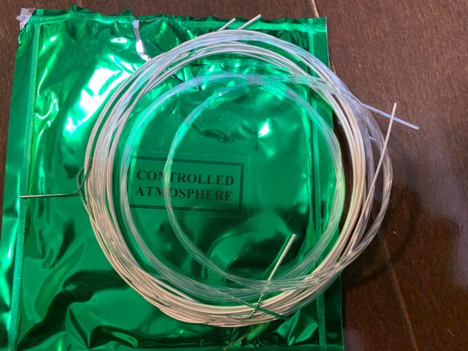 あ、各弦に弦番号がついていないパターンだ。。。どの弦が何弦がわからないので張るときにちょっと困ります。4,000円以上もするんだからここはちゃんとしてほしいですね。