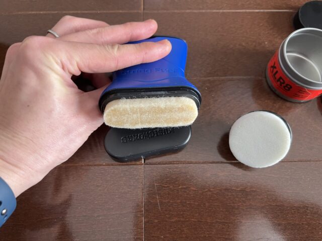 硬いほうが複数の弦を一気に塗る際にぶれずに塗りやすいのですが、一方で弦の側面をカバーするのにはXLR8のような柔らかいスポンジの方がよいのかもしれません。