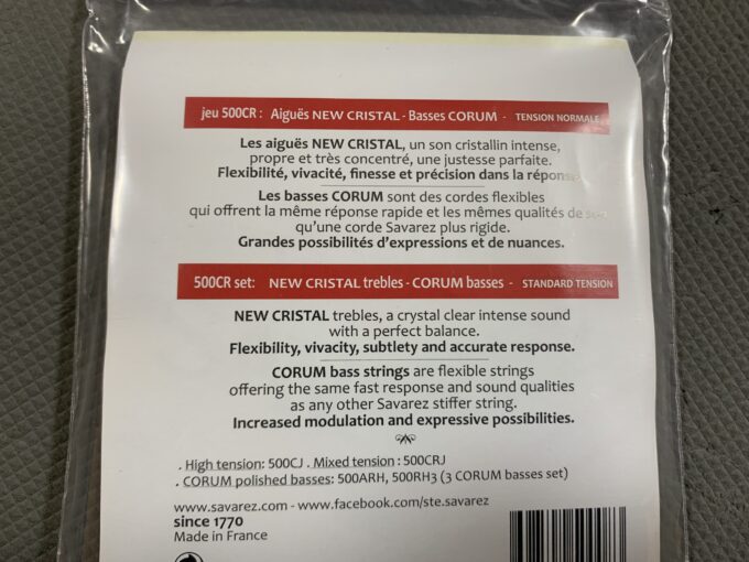 サバレスのコラムといえば、高音弦としてカーボン弦のアリアンスを組み合わせたり、村治佳織はオーガスチンのインペリアルを組み合わせたりしている低音弦ですが、実はサバレス公式のセットとして、高音弦にニュークリスタルを組み合わせたものが存在しています。今回はそんなニュークリスタル・コラムのノーマルテンションを試してみたのでレビューしたいと思います。