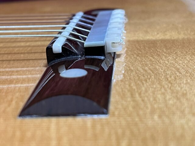 ほかにはクラシックギターケースの材料としても使われるカーボンをナットやサドルに使うこともあります。