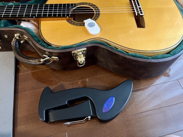 こちらはネックを支える構造でありながら譜面台のように折りたたむことができ、高い安定性を誇ります。