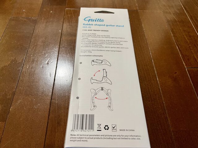 GuittoのGGS-01は自称「ウサギ型(rabbit-shaped)」のギタースタンドです。
