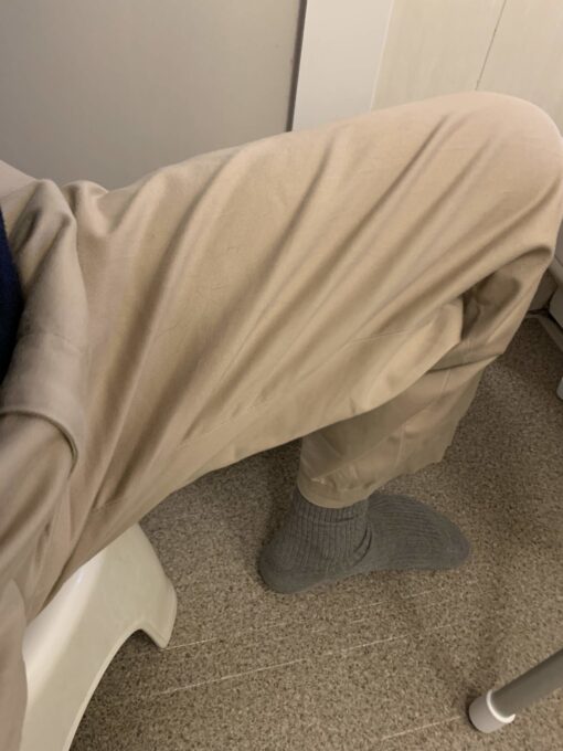 膝と腿を高く上げる姿勢を取らされる風呂の椅子