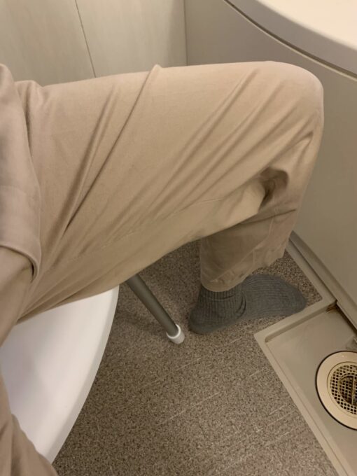 実際座ってみると驚くほど腰が楽です。今まで意識せずに使っていたのですが、低い風呂の椅子のせいで腰に負担をかけていたんだなぁと反省しています。