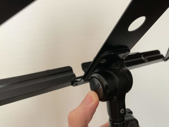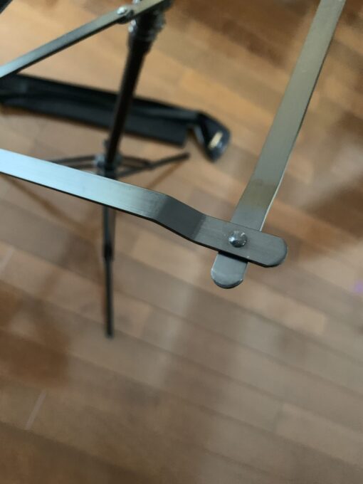 譜面台の角度は地味に気になるところなので結構変える部分です。また、私はしまうときに全体をたたまずに譜面を載せる部分とこの首の部分だけ折り曲げてしまっています。