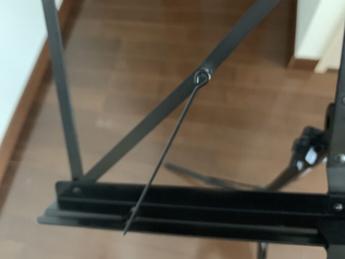 また、上の写真の譜面をおさえておく棒(ページストッパー)もよく固定する力弱まってぐにゃんぐにゃんになるかと思いますが、いまだに固いままでです。